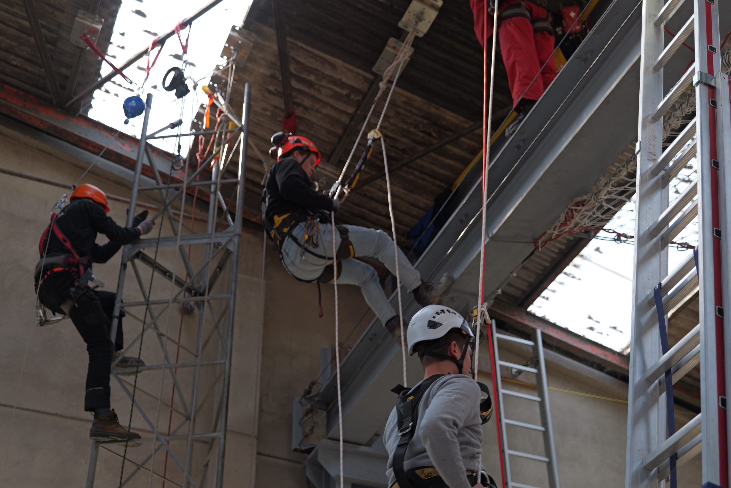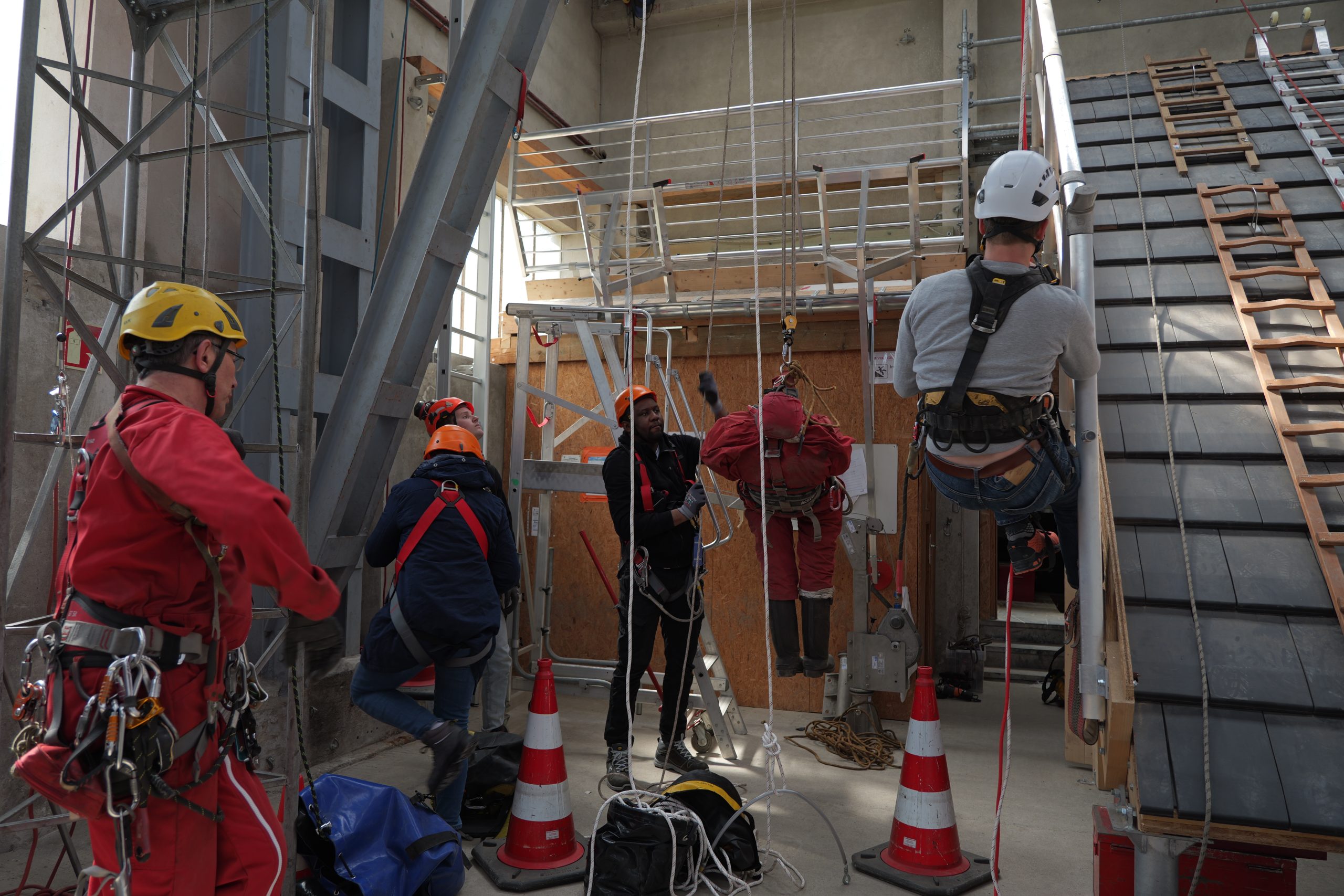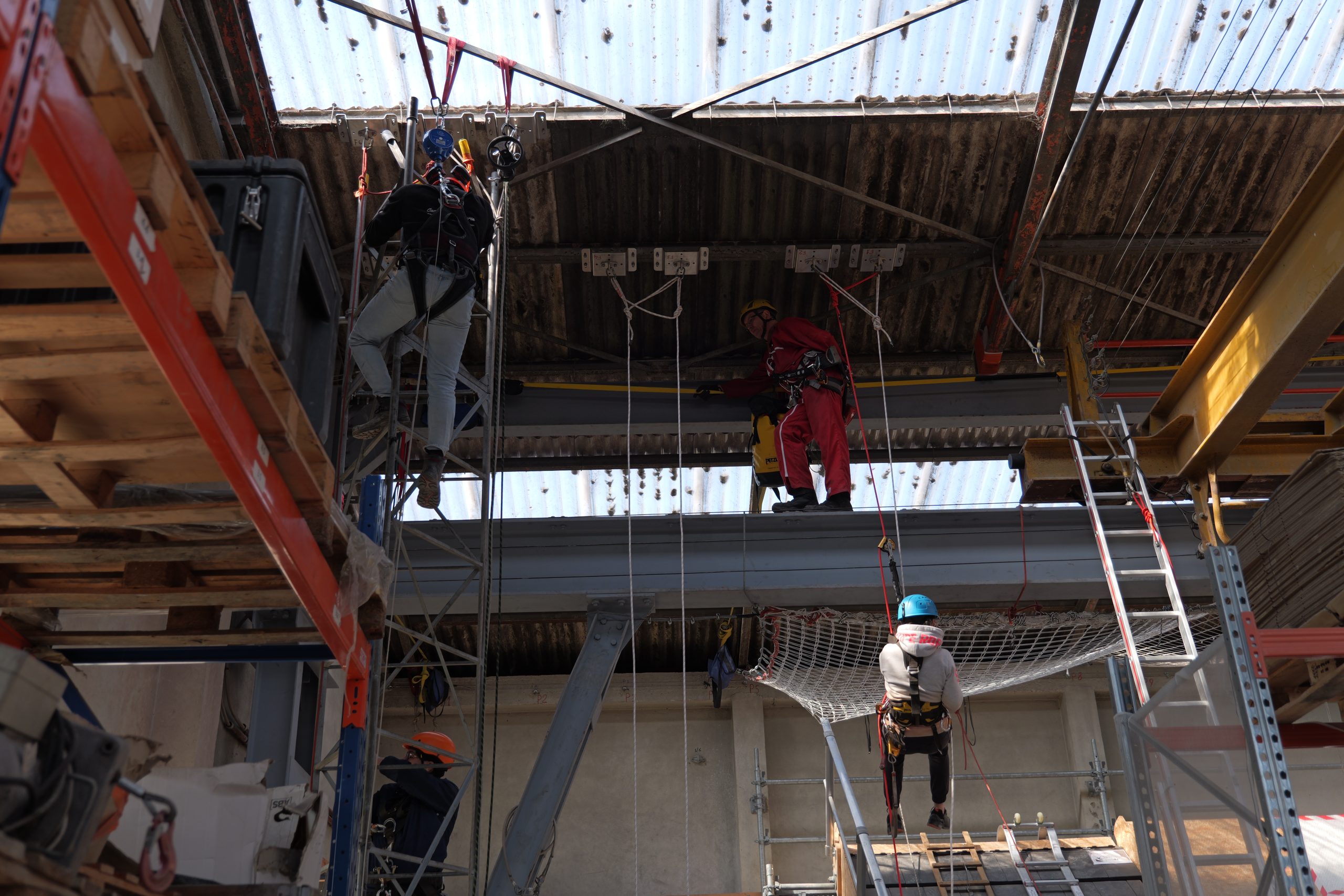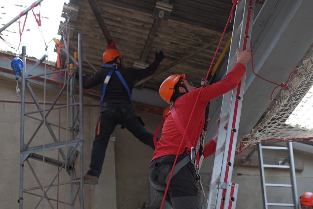La première journée a permis de mettre en avant de nombreuses notions théoriques comme la législation, les obligations des employeurs et des salariés, les caractéristiques des chutes, les systèmes d’ancrages, les analyses de risque ou encore la différenciation entre « EPC » et « EPI » (équipement de protection collective et individuelle).